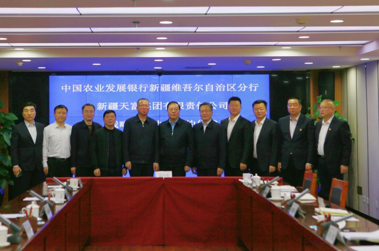 1月23日上午,中国农业发展银行新疆分行分别与中新建电力集团有限责任公司(以下简称“中新建电力集团”)、新疆天富集团有限责任公司(以下简称“天富集团”)在乌鲁木齐市举行《战略合作协议》签约仪式。农发行新疆分行党委书记、行长郑斌,中新建电力集团、天富集团、天富能源股份公司党委书记、董事长刘伟出席并见证签约;区分行党委委员、副行长王吉献分别与中新建电力集团总会计师丁小辉、天富集团财务总监张美振分别代表双方在协议上签字。