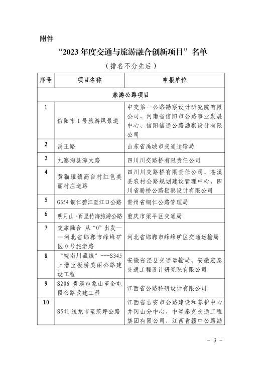 2024年1月29日,中国公路学会旅游交通工作委员会公布“2023年度交通与旅游融合创新项目”名单。