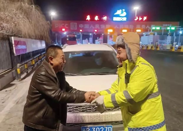 临行时,司乘人员激动地握住他的手说道:“真是辛苦你了,这大冬天要不是你的帮忙,我今天肯定走不了了。”面对司乘的不停感谢,艾力夏提·艾尼娃尔回道:“您太客气了,这都是我们应该做的。”