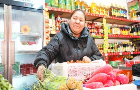 在洛浦县农贸市场,商户热孜万古丽·多来提正装卸、转运、分拣新鲜蔬菜,她的摊位上胡萝卜、西红柿、芹菜、大葱等蔬菜码放整齐,供顾客挑选采买。“春节来临之际我进了蔬菜等必用品,这几天生意很好,早晨进的新鲜蔬菜不到晚上就销售完。”热孜万古丽·多来提说。
