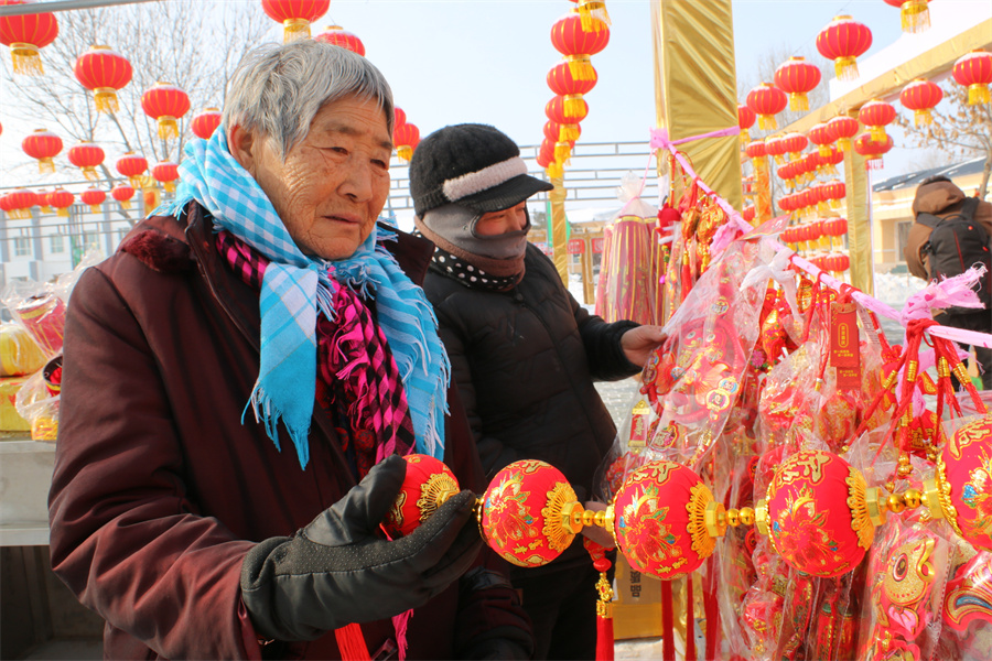 丝绒烫金的春联、镶边彩框的福字、新颖多样的糖葫芦造型让人目不暇接,种类繁多的日用百货、形形色色的花糖一应俱全,集市处处洋溢着浓浓的年味和“烟火气”,也为广大群众选年货、迎新春提供了多样化选择。