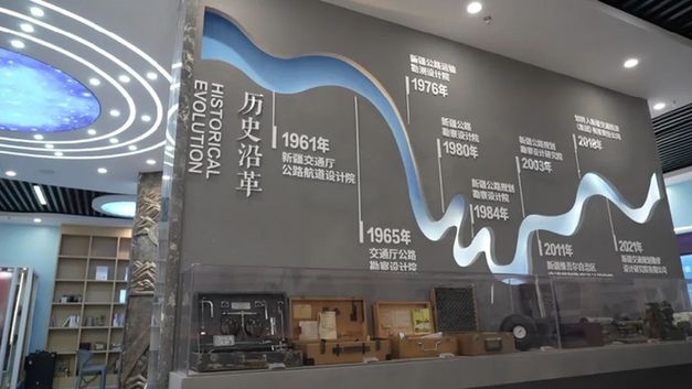 新疆交通设计·院史馆展厅占地面积300平方米,按照新疆交通设计院发展历程分为“大道之始 砥砺岁月”“大道如歌 情筑长路”“大道拓新 绘就坦途”“大道笃行 匠心筑梦”“大道致远 链通丝路”五个章节,分别展列了不同时期新疆交通设计人使用的物探、勘测、检测、绘图等仪器和工具及外业工作中使用的生活用品,以丰富的历史文物、翔实的文史资料、全景展现了几代新疆交通设计人行走山河,丈量天下,在雄奇的新疆大地上绘就万里通途的壮阔画卷。在成果展区,展示了近年来新疆交通设计院在公路工程、交旅融合、交通规划、市政工程、建筑工程、信息工程、科技研发、试验检测等不同业务领域取得的成绩。