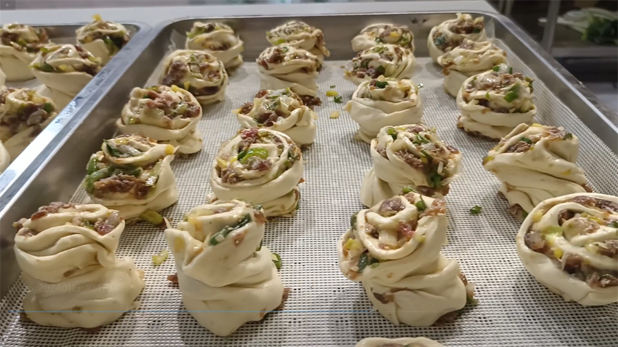 在铺子的一侧,几位面点师傅正在现炸糖油糕和油香。后堂内,面点师锁玉霞正在和姐妹们做香豆花卷、胡麻花卷、香葱肉卷。