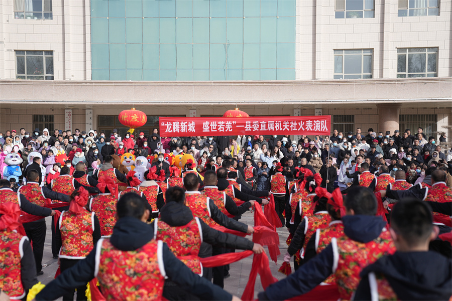 狮舞龙腾闹新春,社火秧歌庆新年。2月10日(大年初一),“龙腾盛世启新城 凝心聚力谱新篇”2024年全县社火巡演活动在楼兰生态广场精彩上演,伴着铿锵的锣鼓,扭着欢乐的秧歌,舞动长龙彩狮,一招一式都饱含着大家对新一年美好生活的憧憬和向往。