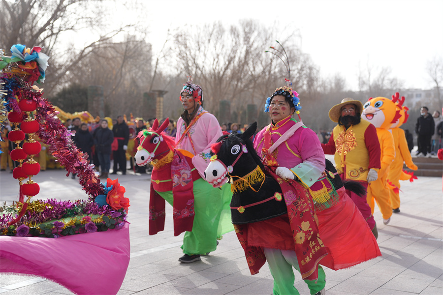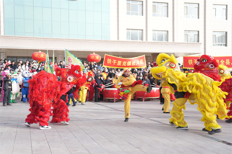 “俗话说春节要热闹,锣鼓加社火,春节期间表演社火是我国传统的民间文化习俗。非常开心能够参加今年的社火表演,我们带来的节目是舞龙舞狮,观众们都很热情,为我们热烈地鼓掌,我们表演得也更起劲了。”若羌县铁干里克镇社火队锣鼓手韩立杰说道。