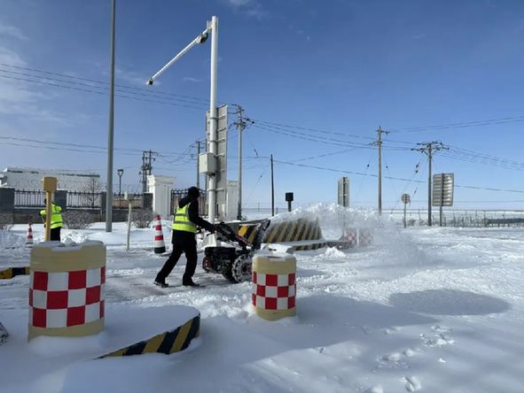 恰夏收费站第一时间启动除雪保通保畅应急预案,合理安排人员上岗参与除雪,将车道、收费岛头、广场的积雪迅速清理,并对广场、车道等易结冰区域抛撒融雪剂,在岗人员24小时不间断进行除雪作业并做好窗口服务工作,提醒司乘人员路况信息、通过LED大屏、可变情报板提醒过往司乘“雪天路滑,谨慎驾驶”,全力为广大司乘人员提供高品质出行服务。