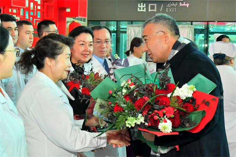 凯赛尔·阿不都克热木向坚守在临床一线的医务工作者送上了鲜花,并详细了解春节期间医务人员值守及患者救治情况,对广大医务工作者的辛勤付出致以敬意,并对医院近几年的发展和取得的成绩给予了充分的肯定,希望医院再接再厉,补短板、强弱项,着力提高科研教学能力,不断提升医疗服务质量,进一步加强与国际医疗机构的交流合作,为新疆的卫生健康事业做出更大的贡献。