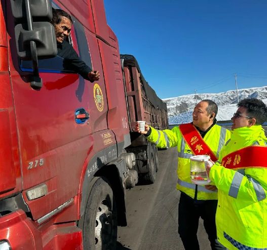 柴窝堡匝道收费站的志愿者服务队,还主动为滞留的司乘人员提供食品、保暖用品和车辆维修工具,确保过往车辆在寒冷的天气里能温暖回家。