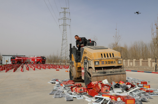 为确保假冒伪劣产品不再流通进入市场,当日,消防救援人员利用压路机、切割设备、消防锤等机械工具,共销毁假冒伪劣灭火器、应急照明灯、疏散指示标志、独立式感烟火灾探测报警器等2300余件。