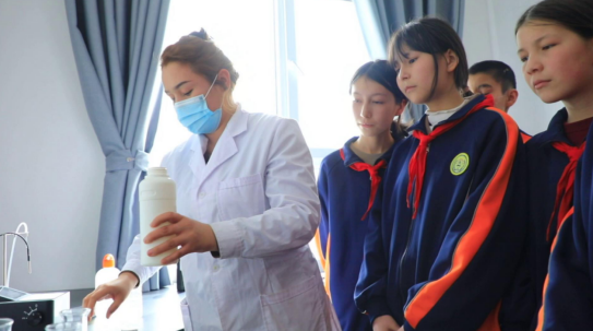 水是生命之源,是人类生人类生存和发展的基础资源,水质化验工作直接关系到广大群众的身体健康和生命安全。进入水质化验室,化验员阿孜古丽·吐地为孩子们详细演示并讲解水质检测试验过程,鼓励孩子们共同运用化学分析法—EDTA滴定法检测水质硬度。在实际操作阶段,孩子们在老师的指导下,一步步将配置好的标准溶液使用碳酸钙进行标定,细心观察锥形瓶内溶液颜色的神奇变化,更直观、更深入地了解水的软硬性质。