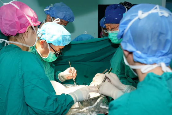 完善术前准备后,手术于3月8日22时许正式开始。在中国医学科学院阜外医院柔性援疆专家王现强主任团队的帮助下,供体获取组和移植组也在同时开展工作,手术有条不紊地进行。开胸、建立体循环、取出病变心脏、移植正常心脏……在麻醉手术中心等科室的全力支持以及多学科团队的密切配合下,历经近6小时,医院顺利完成第5例心脏受体获取,异体同种心脏移植手术。移植心脏在沙女士体内开始正常跳动,标志着手术顺利完成。
