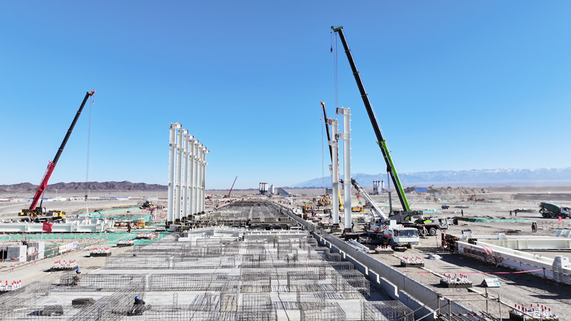 3月18日,哈密至重庆±800千伏高压直流输电工程哈密换流站正加紧施工。(冯洋 摄)