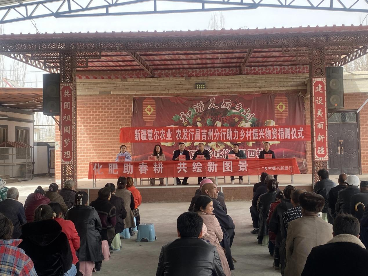 眼下,正值春耕生产的关键时期,为助力和田县英阿瓦提乡吐格曼贝什村打好春耕“第一仗”,中国农业发展银行新疆昌吉州分行携手新疆慧尔农业集团股份有限公司(以下简称“慧尔农业公司”)于近日前往该村开展了“化肥助春耕 共绘新图景”赠肥活动,助推农户吃下春耕生产“定心丸”。