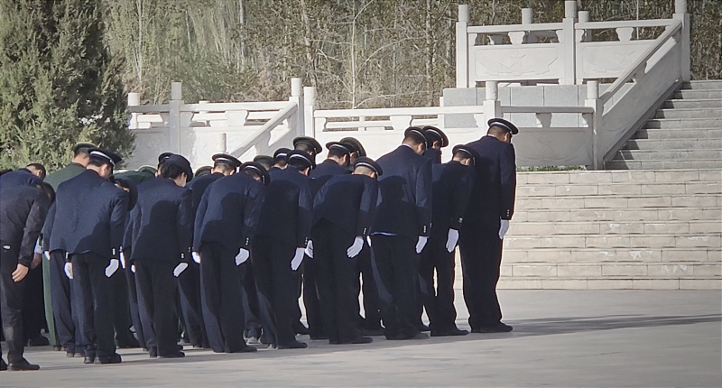 4月2日,洛浦县公安局组织优秀民辅警代表在和田烈士陵园开展“致敬 缅怀 奋进”清明祭扫活动。
