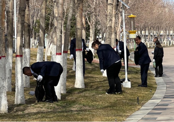 (工商银行克拉玛依运行管理部党支部、安全保卫部党支部与南泉支行以及大学城支行联合党支部走进和平天山社区开展垃圾清理工作)