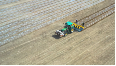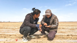 新疆巴州尉犁县兴平镇达西村超级棉田管理者凌磊说:“我们今年采用侧封土的播种模式,用的薄膜是加宽后2.05米的,前两年我们用的是1.25米的,1.25米的上面是1膜4行的棉花,2.05米的是1膜6行,而且我们是用的小行夹带,能够更好地节水,加宽的薄膜可以加快地温的提升,达到出苗更快的效果。”