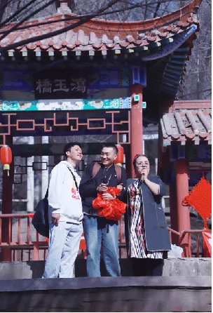 “百年好合”“永结同心”等寓意美好的成语典故,绣球、中国结、红灯笼等文化元素,都使相亲活动现场氛围浓厚,喜气洋洋。在水磨沟公园泻玉桥间,欢声笑语不断,每个人的脸上都洋溢着幸福的笑容。