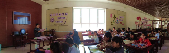 读书之余孩子们在做手工游戏活动。田昆 摄