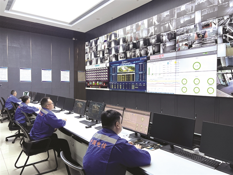 4月16日,在中国电信新疆公司云计算中心,工作人员正在实时监控中心内察看设备运行情况。左晓雨摄
