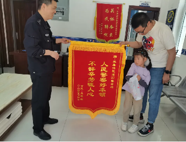 水磨沟区公安分局石人子沟派出所民警帮忙找到手机 失主送锦旗致谢 5月3日,市民王璐带着五岁的女儿在温泉东路北二巷的尔萨饭庄就餐时,不慎把价值万元的手机遗失在饭庄门口绿化带的座椅上。“手机才买不久,拨打中一直处于关机状态,关键是手机壳内有两张我们公司的账目票据,这丢失了就麻烦了。”王璐说,当天农家乐的游客很多,他也是抱着试试的心态找到农家乐附近的民警寻求帮助。 水磨沟区公安分局石人子沟派出所民警王军锋仔细询问了王璐丢失手机的过程,并做了记录,随后调取了农家乐的监控,和其他民警一起一帧一帧查看监控视频,查找到相关线索后进行走访、摸排,最终找到遗失的手机并归还失主。“真没想到遗失的手机能够找回来,十分感谢节日期间还坚守岗位、尽职尽责的民警们,正是有了他们的辛勤付出,我们才能度过一个祥和、欢乐的假期。”王璐拿着失而复得的手机高兴地说。