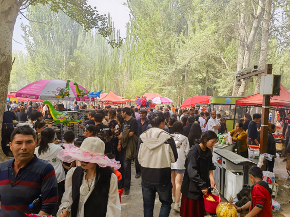 节日期间,在乌什县燕泉山景区美食展游人如织。 记者 艾克热木·牙生 摄