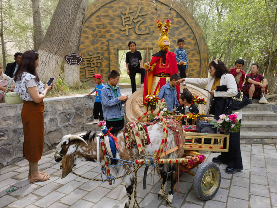 在燕泉山景区,“网红”羊车备受游客欢迎。 记者 艾克热木·牙生 摄