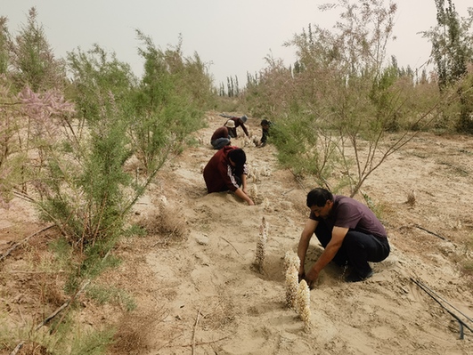 这种新质产业的发展,让村民们深刻认识到创新和开拓的重要性,他们不再局限于传统的发展模式,而是勇于尝试新事物,积极拥抱变化。大芸经济的成功实践,为乡村发展树立了新的典范,也为其他地区提供了宝贵的经验借鉴。截至目前,策勒县人工种植红柳大芸面积达4.37万亩。其中:管花肉苁蓉3.79万亩、荒漠肉苁蓉0.58万亩,已接种大芸4.19万亩初见效益,有效地推动和发展了沙区经济,促进了农民的增收。