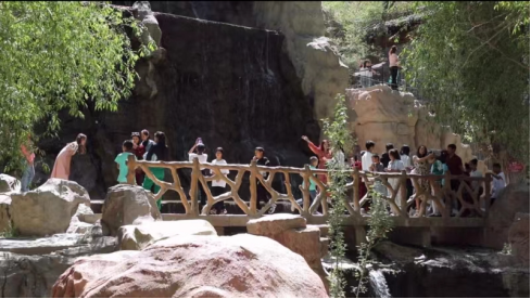 5月3日,乌鲁木齐游客王女士和家人在燕泉山景区游玩。“乌什的风景太美了,这里的瀑布、小桥流水让人心旷神怡,来了还想再来。”王女士说。