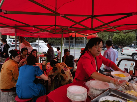 乌什镇个体户米丽开姆·艾尔肯平时在每周日去农民巴扎卖凉粉,今年“五一”期间,她将自己的生意搬到了景区门口,忙得不亦乐乎。
