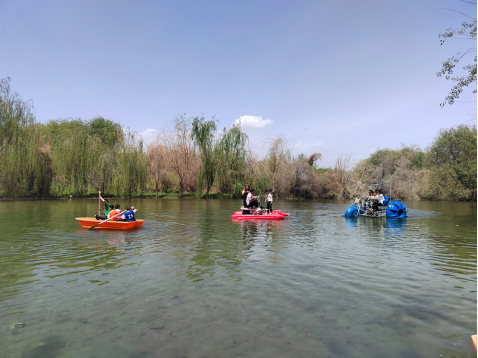 “五一”期间,乌什县奥特贝希乡水上绿洲农家乐推出了网红摇摆桥、划皮划艇、儿童游乐场等不少特色项目,游客不仅在这里赏美景、品美食,还能体验旅游设施,享受节日欢乐。