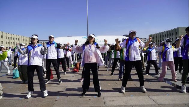 全体参赛队员在老师的带领下跟着音乐节奏,跳起热身操。随着一声哨鸣,各参赛队伍怀着饱满的热情、昂首阔步,开启了“万步有约”健走激励大赛的美好征程。