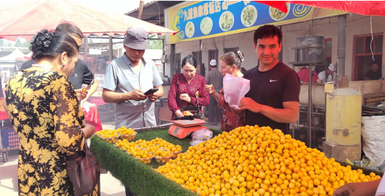 依麻木镇汗都村村民布尼亚斯汗·艾拉说:“每周三我都会带着家人来逛巴扎,巴扎上的东西种类很多,价格非常实惠,蔬菜水果也非常新鲜、好吃。”