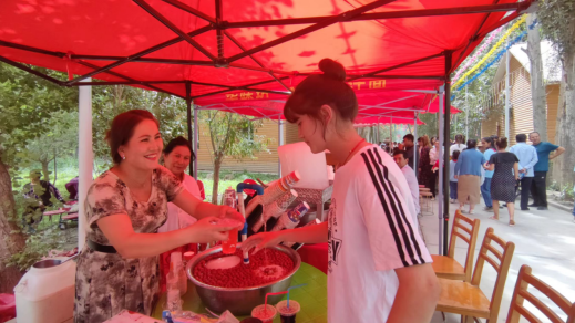 “家里有2个孩子,就想着和丈夫做个生意,夏季刨冰酸奶大人小孩都喜欢吃,所以就做这个,每年夏季可以赚到3万多元,今天人也特别多,这一天已经挣了1000多元。”古丽扎尔·巴图尔高兴地说。