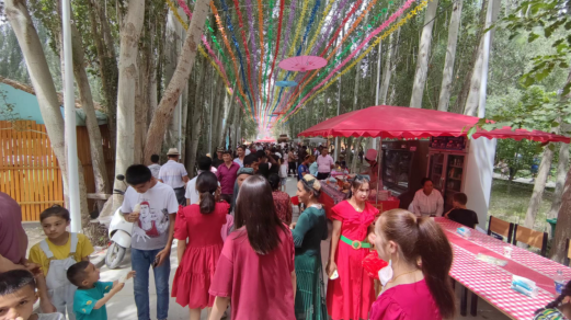 5月18日,2024年“5.19中国旅游日”阿克苏分会场活动暨乌什县“醉美7村”第三届食用菌采摘系列活动在依麻木镇托万克麦盖提村举行,活动中,除了舞台上精彩的歌舞表演,风车长廊里的各类特色美食,也是让游客垂涎欲滴,吸引了一大波人气。