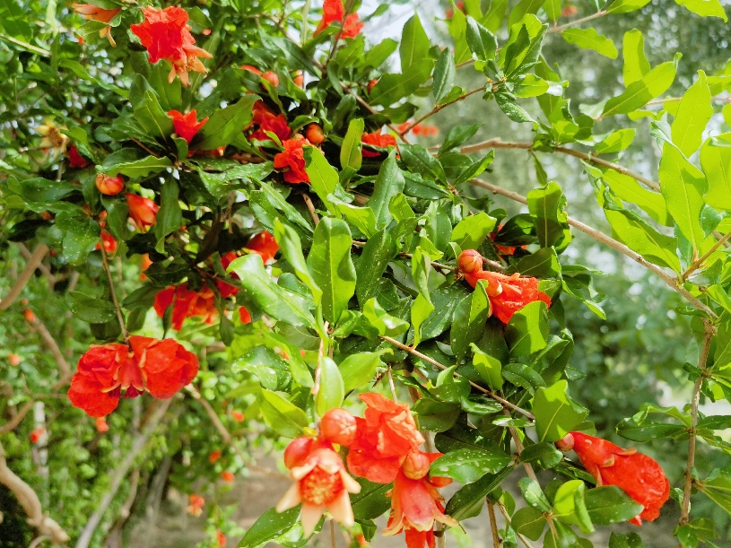 石榴象征团结、和谐、友爱的美好寓意。怒放的花儿红得浓烈,红得纯粹,红的奔放......