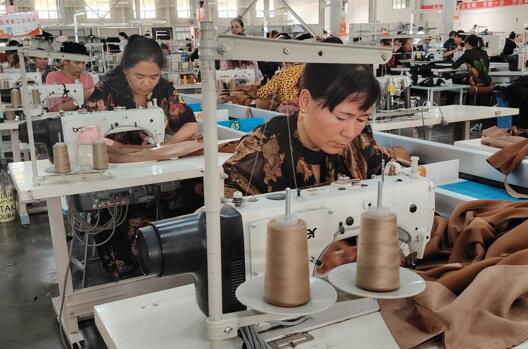 英吉沙县卓驰服饰有限责任公司生产车间厂长马健聪说:“目前,公司接的订单已经排到了12月份,总订单量80多万件,现有员工300余人。”