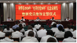 7月1日上午,尉犁县举行2024年“光荣在党50年”纪念章颁发暨新党员集体宣誓仪式,动员全县党员干部赓续光荣传统、矢志奋勇前行,推动尉犁经济社会高质量发展,以优异成绩向建党103周年献礼。县委常委、组织部部长李倩雯出席仪式并讲话,县人大常委会副主任买买提·马木提、县政府副县长热汗古丽·亚合甫、县政协副主席艾尔肯·衣明出席活动。县直各部门单位分管领导、纪念章受颁老党员代表、预备党员代表在主会场参加仪式;各乡镇党委组织委员、所属党组织书记及预备党员代表共150余人在各分会场参加仪式。