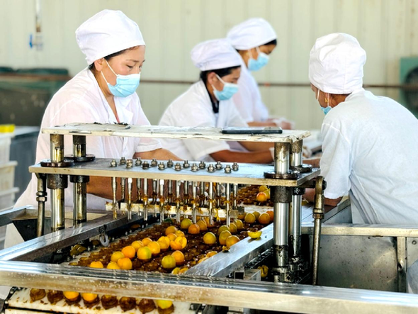 7月3日下午,走进新疆优乐果农业科技有限公司生产车间,百余名员工在紧张有序地对鲜杏进行清洗、切半、拣选、分级、摆盘上架,放入烘干房进行烘干。果糖加工生产线正在满负荷运转,杏脯、杏酱等精深加工杏产品源源不断从车间走向全国各地市场。