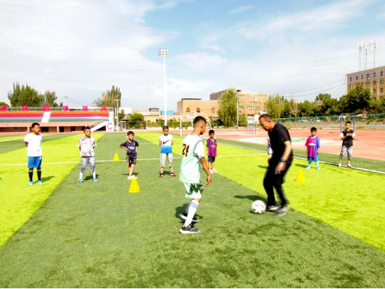 足球班学生赛米·麦麦提热依木说:“我非常热爱足球,在足球班,老师耐心地给我们指导,我会多多练习,增强球技。”