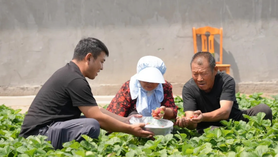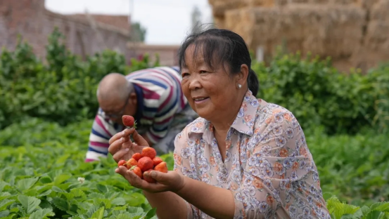 在吐尔洪乡喀拉奥依村,村民吴登庆正在采摘草莓。近几年,他在村“两委”的鼓励下大力发展庭院经济,不仅美化了庭院环境,还提高了家庭收入。