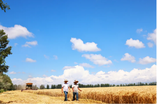博乐市委常委马那提别克说:“博乐市冬麦喜获丰收,得益于良田、良种、良技、良法的集成应用。今年,博乐市设置37块8.2万亩高产攻关田,形成了县级领导,市乡两级科级干部、专业技术人员包联包片的机制,从农作物的犁、耙、播、种、管、收各个环节加大服务力度,农技人员全场跟踪指导服务,通过精细整地、优选良种、适期播种、精准水肥管理等一系列科学种植管理技术,为小麦单产打下坚实基础。”