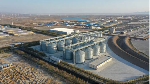 俯瞰阿拉山口综合保税区粮食现代物流中心