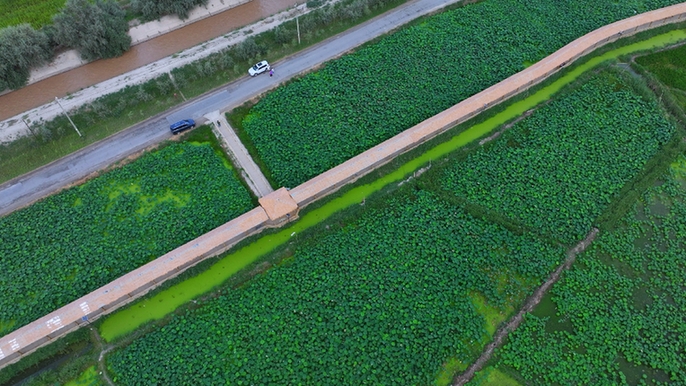 “接天莲叶无穷碧,映日荷花别样红。”眼下,喀什地区莎车县依盖尔其镇阔纳先拜巴扎村的荷花迎来了盛开的季节,荷塘里荷叶田田、花开绰约,清风徐来,荷花迎风飘动,阵阵幽香扑鼻而来,为炎炎夏日带来了一抹清新与宁静。