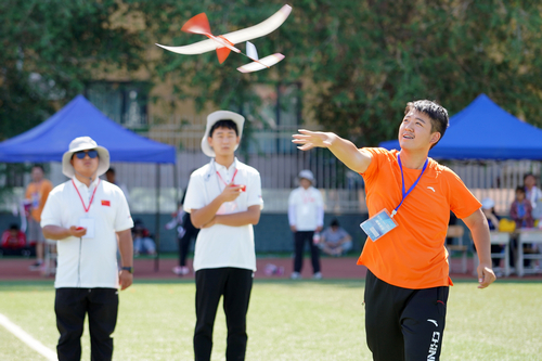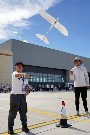 一名选手进行遥控纸飞机任务赛。克拉玛依融媒记者 李浩然 摄