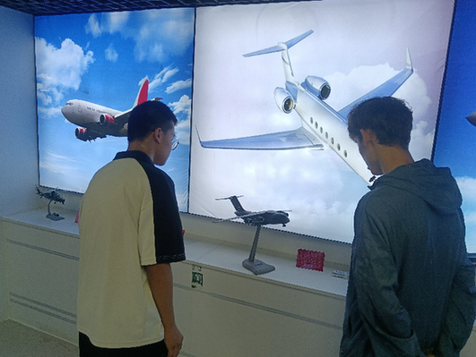 走进科普馆的超大展厅,同学们立刻被眼前各种各样的科技模型深深吸引。展馆设置了航空航天展区,两弹一星展区等。在科普馆讲解员的带领下,同学们一边聆听着讲解,一边阅读着模型旁边的注释,情不自禁的摸摸这个飞机模型、看看那个潜艇模型,心中的喜悦无以言表。