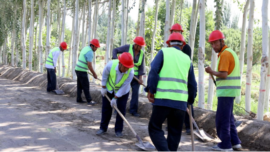 实施“以工代赈”项目不仅为村民带来收入,还可以为美化家园“出力”。对参与道路建设的村民来说,是件“一举两得”的好事,实现了增收与建设双赢。阿卜杜萨拉木·艾力作为施工工地上的安全员,就是“以工代赈”项目的受益者之一。