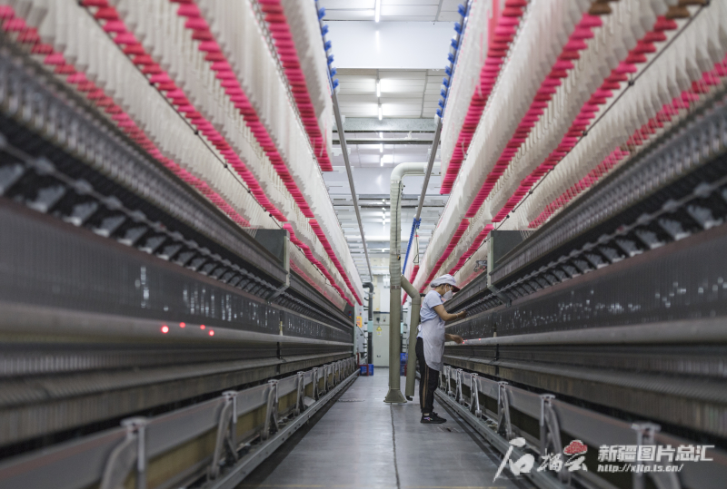 6月13日,昌吉溢达纺织有限公司纺织车间,员工在整理纺线。何龙摄