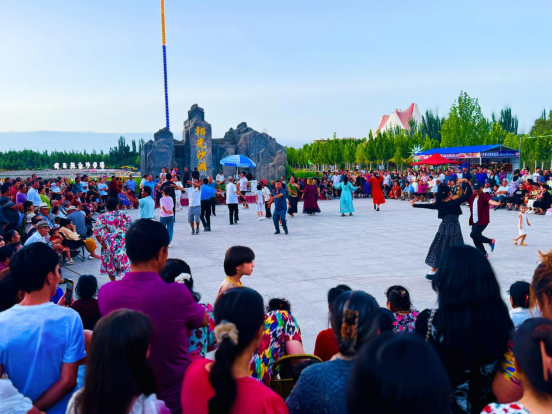 居民群众在达瓦孜公园跳舞。娜扎凯提摄