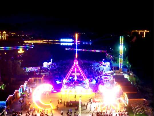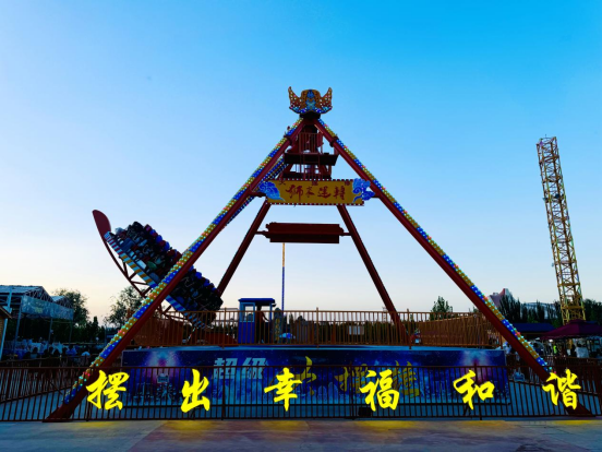 娱乐设施大摆锤正在营业。娜扎凯提摄
