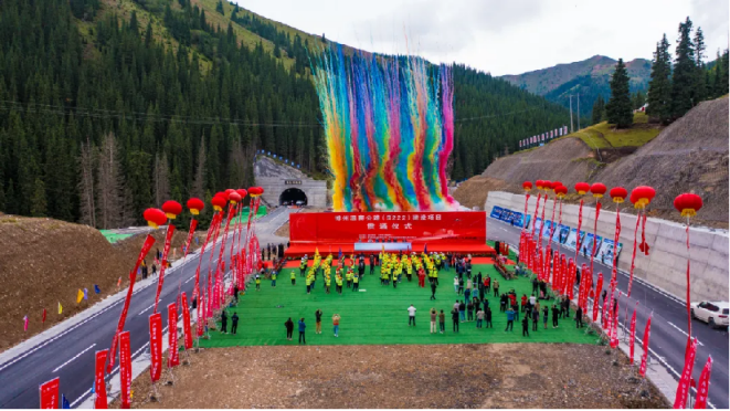博州温赛公路(S222)建设项目贯通仪式现场。